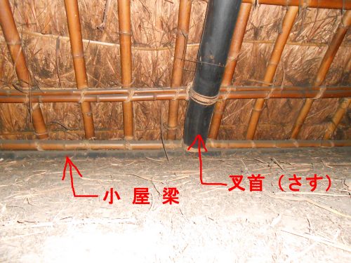 先ほど叉首(さす)は小屋梁につき立てると説明しました。