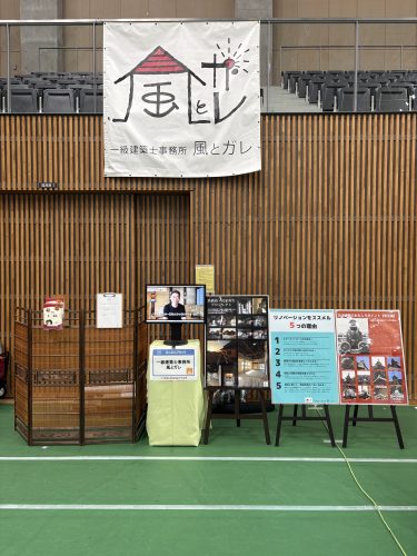 今年は淡路島古民家プロジェクトのパネル展示とリノベーションの事例や工事の作業風景の動画や